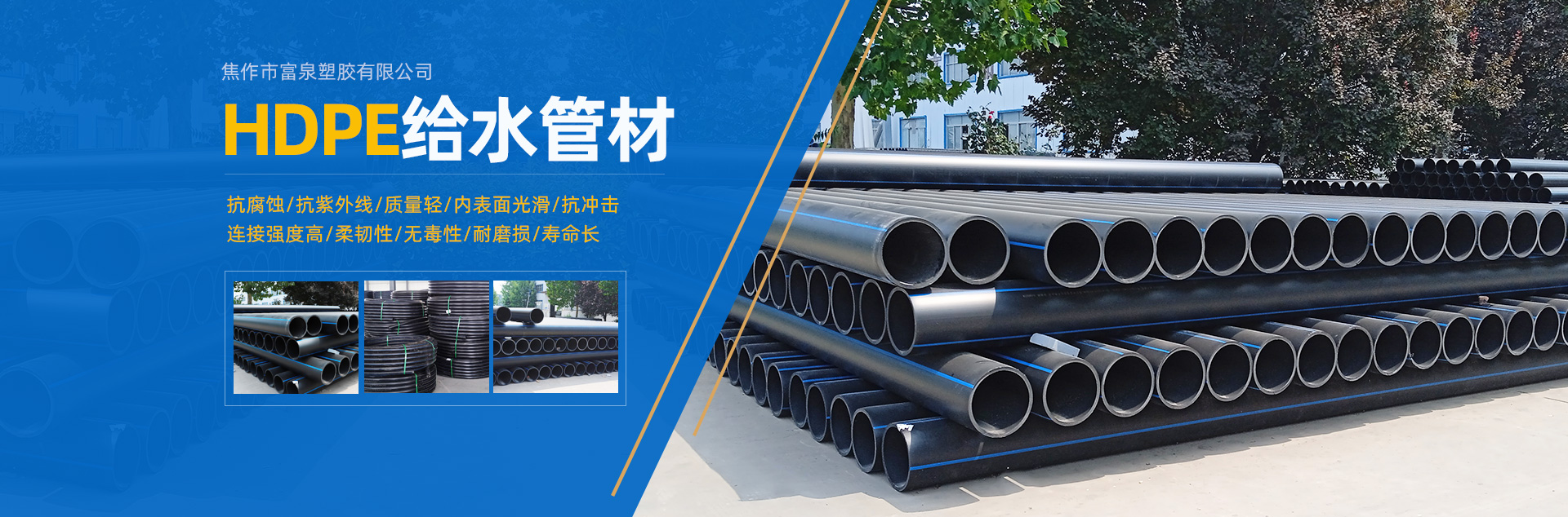 - 焦作市富泉塑膠有限公司,創立于1995年,是一家集研發、設計、生產、銷售為一體的大型管材企業。公司位于太極故里、黃河之濱一一河南焦作溫縣。公司占地128畝,現有職工210余人,其中具有中技術職稱的19人。生產、檢驗設備58臺(套),包括PVC實壁管生產線11套、PE實壁管生產線12套、HDPE雙壁波紋管生產線6套、PVC雙壁波紋管生產線5套,檢驗設備14臺(套)。主要產品有:Φ20mm-630mm、各種壓力規格的PVCU、PVC-M、PE給水管材,PVC-U節水灌溉管材,HDPE燃氣和礦用管材,DN200-800mm的HDPE、PVC雙壁波紋管及各種噴灌、滴灌工程材料。承接大中型市政供排水、飲水安全及節水灌溉等工程。 富泉塑膠公司重視產品的質量、安全、環保和節能,在同行業中率先完成了“新華節水產品認證”,全方面通過ISO9001:2008國際質量管理體系、IS014001:2004環境管理體系和OHSAS18001職業健康安全管理體系的一體化導入,并建立起規范的現代企業管理體系。公司以“質量”為先導,采用質量跟蹤、多環節把關的方法,組建具有行業水準的企業技術檢測中心,常年委托水利部節水灌溉設備檢測中心、河南省產品質量監督檢驗院對產品跟蹤檢測,并由中國人民保險公司承保產品質量。公司連續多年被河南省水利廳確定為“安全飲水設備、節水灌溉設備”定點生產企業,并獲得“中國名優產品”“質量、服務、信譽AAA企業”“河南省**產品”“河南省水利企業”“河南省守合同、重信用企業”等榮譽稱號?! 「蝗苣z公司堅持“用戶為上”的服務理念,長期以來,全方面關注客戶價值,不斷提升服務水平。服務隊伍常年為客戶的產品設計、施工、安裝提供合理的方案和全程細致、周到、**、快捷的技術服務。公司自成立以來,一直堅持以人為本的宗旨,塑造企業形象,并致力于新產品的開發,憑借雄厚的技術開發能力,先進的工藝制造流程,嚴格的質量管理保證體系,優良的售后服務網絡,已成為河南省大的飲水、灌溉及排水管材設備制造商。產品暢銷全國,而且還以公司雄厚的綜合實力在業界中占據著重要的地位。